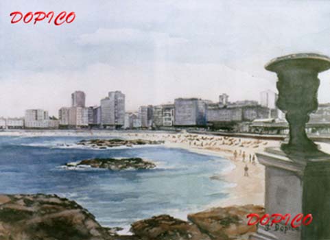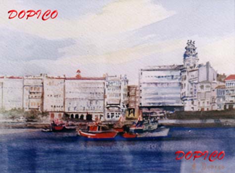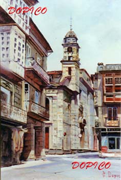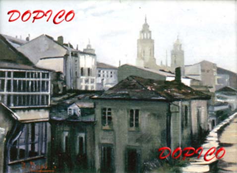 Exposiciones Castro Dopico en el Banco Gallego El pintor coruñés José Castro Dopico expone su obra desde el pasado día once en la sala de arte del Banco Gallego de Lugo. La muestra, que recoge un total de treinta y tres obras de temática variada, podrá ser visitada hasta el próximo día 18 en horario de visitas de 7 a 9 y media de la noche en días laborables y de 12 a 2 del mediodía, los festivos. En opinión de José Trapero Pardo, según reseña realizada con motivo de la anterior exposición del pintor y que figura en el catálogo, "Castro Dopico construye edificios con pincelada metódica predominando en su obra el neoimpresionismo".
