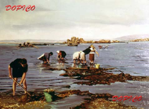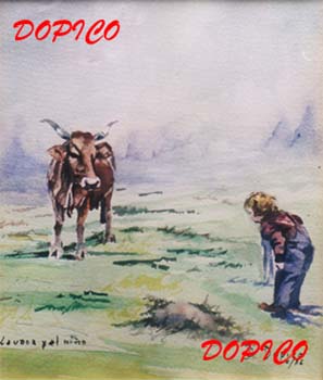 De arte Óleos y acuarelas de Castro Dopico J. Trapero Pardo Numerosos son los cuadros al óleo y a la acuarela que el artista expone en la Sala de Arte del Banco de Crédito e Inversiones, con temática varia, que va desde el bodegón a la marina, pasando por el paisaje, el retrato, edificaciones urbanas y rurales y escenas de los hombres "da mariña" y del campo. El valor de esta obra se basa en el dibujo de notable perfección y en la peculiar entonación que el artista da a sus cuadros, ajustada al paisaje gallego, en el que predomina la suave tonalidad colorista; similar a la empleada por Parmaroli en alguno de sus cuadros, aunque en el paisaje de bosque, con otra fuerza cromática, se acerca más a otros de Beruete. Entre los que figuran en la exposición destaca el número 4, titulado sencillamente "Bosque", en el que el juego de la luz a través de la arboleda está perfectamente logrado. Siguiendo la Escuela pictórica de La Coruña, Castro Dopico saca de los grises de las mariñas gallegas lo que hay en ellas de suavización de las formas, como puede verse en la 9, en la que, difuminado el conjunto por la neblina, se aprecia entre ella una aislada lancha en el mar. Entre los cuadros que figuran en la exposición hay algunos con temas de Lugo y su provincia. Nuestra Plaza del Campo, tantas veces tema de pintores y dibujantes, ha sido representada por este artista de modo original, pues además de captar el ambiente recoleto y suave de la Plaza, de un modo realista, la ha captado con especial perspectiva, "Ferreira de Pallares" y "Rincón de Centulle", son dos obras en las que al colorido da valor el ajustado dibujo de volúmenes y formas. Aún sin separarse del realismo, Castro Dopico, mantiene en algunas de sus obras un sentido poético y sugeridor, que, partiendo de un neoimpresionismo que se aprecia en la mayoría de sus cuadros, realiza figuras humanas y otros elementos, componiéndolos con una estructura y colorido notables. En la acuarela, con técnica similar a la del óleo, el artista prueba su seguridad y limpieza del trazo, utilizando volúmenes y veladuras al primer toque, lo que da a sus obras relieve y profundidad. Técnica especial es la de dibujar con la espátula y tinta negra, que permite la sensación de un aguafuerte al cuadro. Abunda la figura humana en la obra de Castro Dopico. Posiciones y escorzos adecuados a la escena en que figuran perspectivas logradas por la gradación del tamaño de las mismas a la vez que logra bellos efectos de expresión. "A feira do pulpo", "Mariscando" y "Mariscadores" -éste en mi opinión el mejor en el estilo- forman con "Marineros en puerto", un buen ejemplo de composición. Es digna, pues de ser visitada esta exposición, ya que en ella se puede conocer la obra de un artista y un técnico como es Castro Dopico.