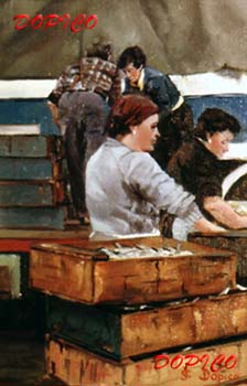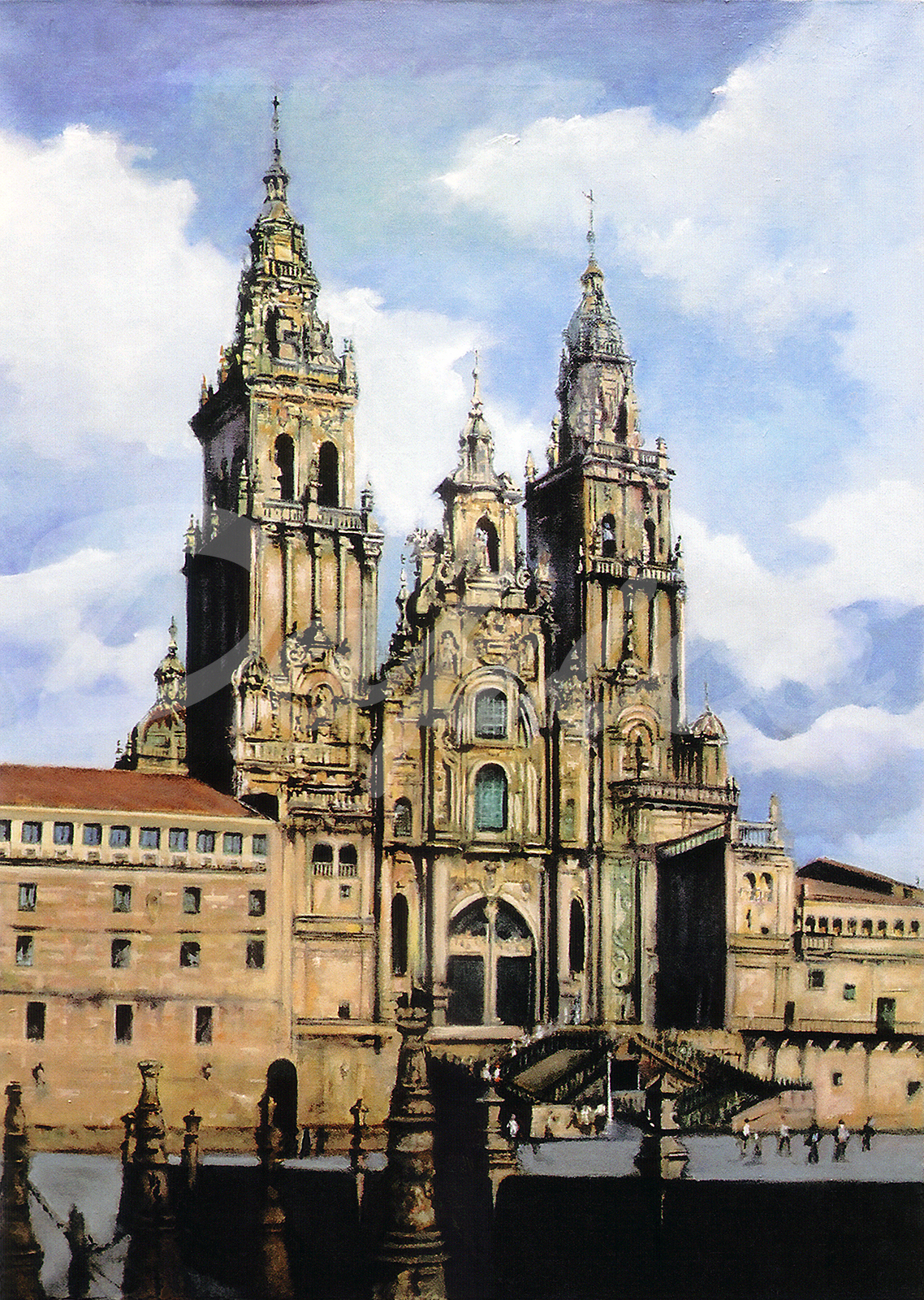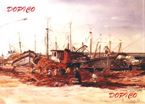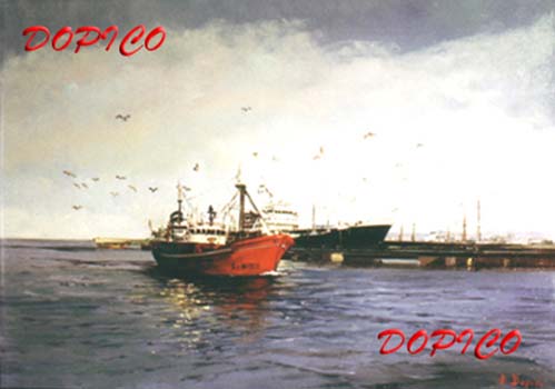 Exposiciones. J. Trapero Pardo. Obras de Castro Dopico en Sala de Arte del Banco Gallego. En Lugo de nuevo el artista coruñés José Castro Dopico. En la Sala de Arte del Banco Gallego expone una amplia y vistosa colección de pinturas de formato vario y temas que van desde el retrato a la creación de formas y del contrastar valores cromáticos hasta el paisaje marino, rural y urbano. Ya en exposiciones anteriores demostró su maestría en el dibujo; pero en la actualidad, a esa notable condición, se unen nuevos logros técnicos, siempre dejando en ellos su personalidad e inspiración. Temas que el artista, en su incesante recorrer Galicia, ha captado en las cuatro provincias y que ha sabido plasmar en cada una los propios efectos de luz. Una de las características de Castro Dopico es la de saber dar expresión de movimiento o de inercia a sus obras, de acuerdo con lo que representan. Los números 7 y 8, representan dos embarcaciones. Una en que las líneas amplias de las velas desplegadas de un gran navío -tratadas con suaves efectos de luz y sombras-, y el casco del mismo en navegación; nos hacen ver la fuerza y vemos en movimiento la nave; mientras que el velero navega, otro buque, acoderado a un muelle, perfila de modo vertical la arboladura, en líneas casi paralelas. Este buque descansa. Artesanía es el título de una obra en que la paciente realización de un tapete en blanco, en el que pueden contarse los puntos, tiene sobre él una serie de objetos metálicos de uso doméstico, que aparecen en relieve. Pero el artista ha sabido dar al conjunto un sentido romántico con un breve ramo de flores que allí aparece. Unido a esa perfección del dibujo, que haría de sus cuadros un realismo a ultranza, si no pusiera en ellos ese algo "vital", en lo que es inerte; Castro Dopico representa monumentos como el Pórtico de la Gloria, Puertomarín, Platerías y otros, en los que, utilizando tonos y luces,y los contrastes de luz y sombras; se llega a darlesuna eficiencia, que nos parece hallarnos ante esos monumentos reales. Y dije que hay en esta exposición el retrato. Y ahí, en su autoretrato y en el de una niña, se aprecia cómo ha sabido utilizar la pincelada y el color, para que los rostros expresen una situación anímica que la cámara fotográfica no podría lograr. Asimismo, cuadros de composición de figuras y ambientes, como Castañeira y Maternidad, nos meten en funciones dispares, pero unidas por el sentimiento que en las obras puso el autor. Termino, pues, este breve comentario de las numerosas obras expuestas; pero en todas aparece el perfeccionamiento del arte que Castro Dopico ha puesto en su trabajo y el sentido poético que ha dado a alguno de sus cuadros. Una vez más, pues, felicitamos al notable artista.
